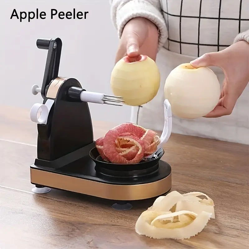 Durable handheld slicer with automatic rotation. Ideal for peeling apples, pears, and potatoes—quick, easy, and battery-free.