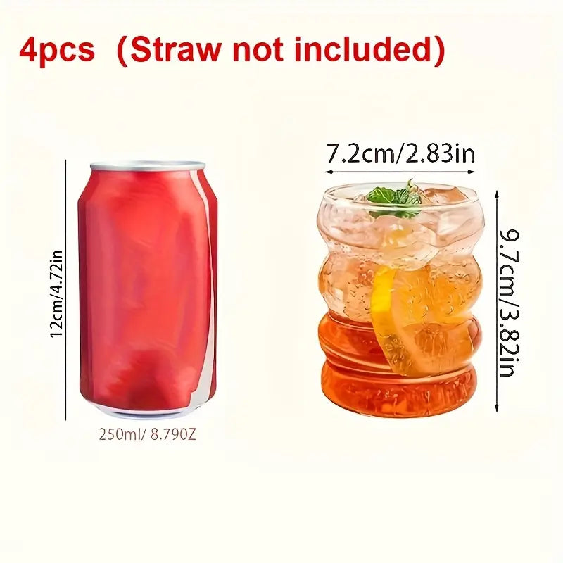 4pcs Wave-Shape Ripple Glass Set with a vintage bubble design, crafted for iced coffee, soda, juice, champagne, and more. Stylish, durable, and versatile—perfect for home, kitchen, bar, or party use.