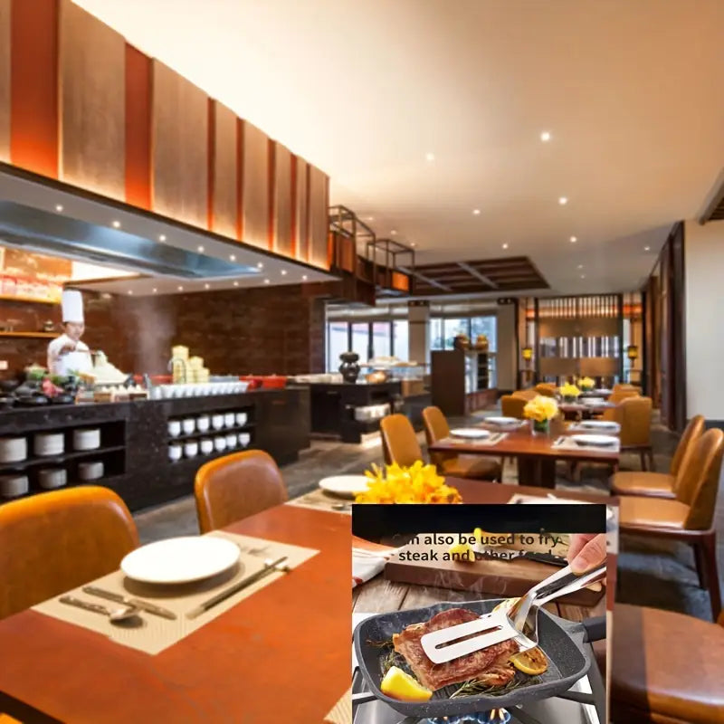 Premium Stainless Steel Fish Spatula & Tongs - Non-Stick, Heat-Resistant, Multi-Use Kitchen Tool for Frying, Flipping & Steak Handling - Ideal for Home and Restaurant Kitchens, Fish Spatula for Frying